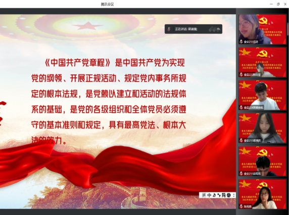 2班胡钰欣:通过对二十大精神和党章的学习与交流讨论,我深刻认识到,作为新时代青年,首先要牢记习近平总书记的嘱托,在党的领导下,以新时代好青年应有的姿态,不断增强居安思危的忧患意识。以只争朝夕、时不待我的紧迫感坚持深入学习。同时,作为一名入党积极分子,我应该自觉维护党章,把党和人民群众的利益放在最高位。对于需要帮助的弱势群体施以援手,积极参加志愿活动,将对于党章的理解落实到更多的行动当中去。