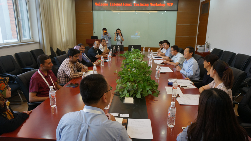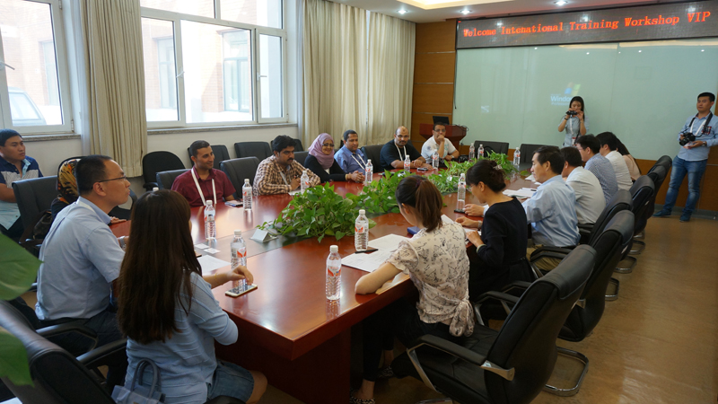 徐宝财经理首先致欢迎词,介绍了学院的发展情况,并对外籍学员的到来表示热烈欢迎,并希望将来有科学研究和人才培养等方面有进一步的合作。国际交流与合作处何明轲处长代表学校对大家的到来表示欢迎,并对学校的总体定位和发展格局向学员进行了介绍,并赠送了礼物。姚志良副经理就学院的本科、硕士、博士等人才培养项目,以及科研和国际交流等方面向与会学员进行了详细介绍,并欢迎外籍学员及其同事来世界杯网址进行学习。培训班承办方中国日用化学工业研究院中国日用化学工业信息中心裴鸿主任回顾了两个单位的历史渊源,对公司的热情接待表示感谢。7名学员也分别介绍了自己的研究或者工作方向,并对自己感兴趣的学院情况与与会人员进行了交流。
