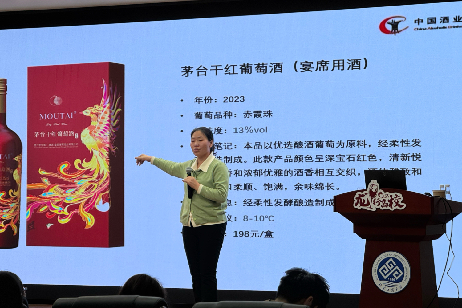 公开课的授课内容由“葡萄酒知识课堂”“葡萄酒感官品评理论”与“品酒实践”三个环节构成。火兴三围绕中国葡萄酒产区选择、气候条件和葡萄种植技术展开授课,指出中国葡萄酒需结合本土气候和文化,酿造具有中国特色的葡萄酒。段雪荣作为企业代表,从酿造工艺角度阐释中国风味葡萄酒的设计理念。酿酒工程系青年教师李金宸以《舌尖上的探秘—葡萄酒感官品鉴》为题,从“感官生理基础”“葡萄酒风味基础”“葡萄酒评价体系”三大理论模块,集合来自河北、宁夏、陕西、新疆等4个国内产区的6款典型酒样,引导员工通过“观色、闻香、品味、总结”四步法进行葡萄酒品评实践,现场互动气氛热烈。
