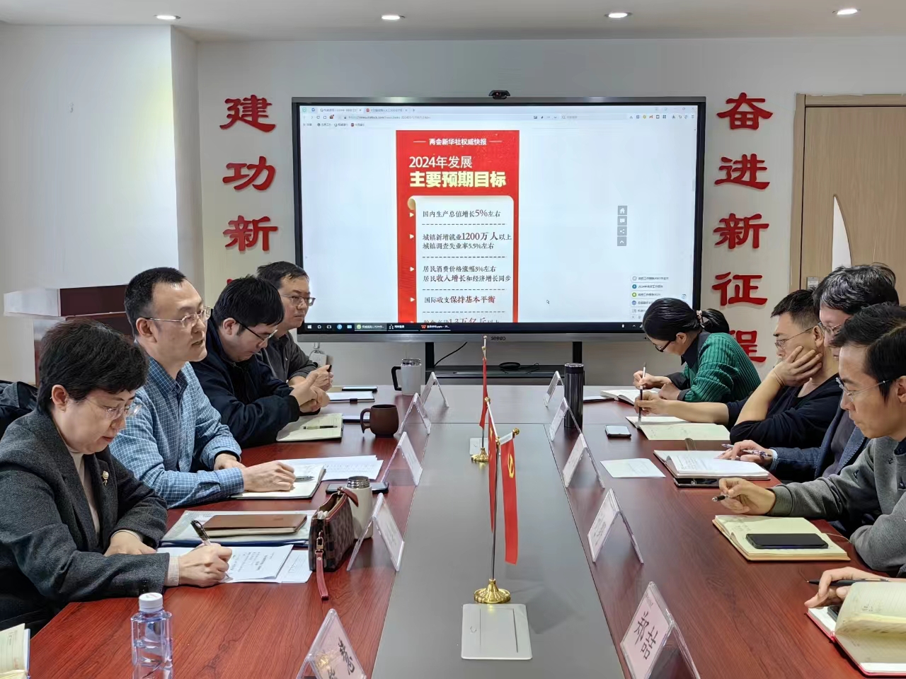 3月5日,公司党委理论学习中心组全体成员及教师党支部书记齐聚一堂,第一时间学习国务院总理李强代表国务院向大会作的政府工作报告,交流学习感想,并结合学院年度重点工作进行了研讨。