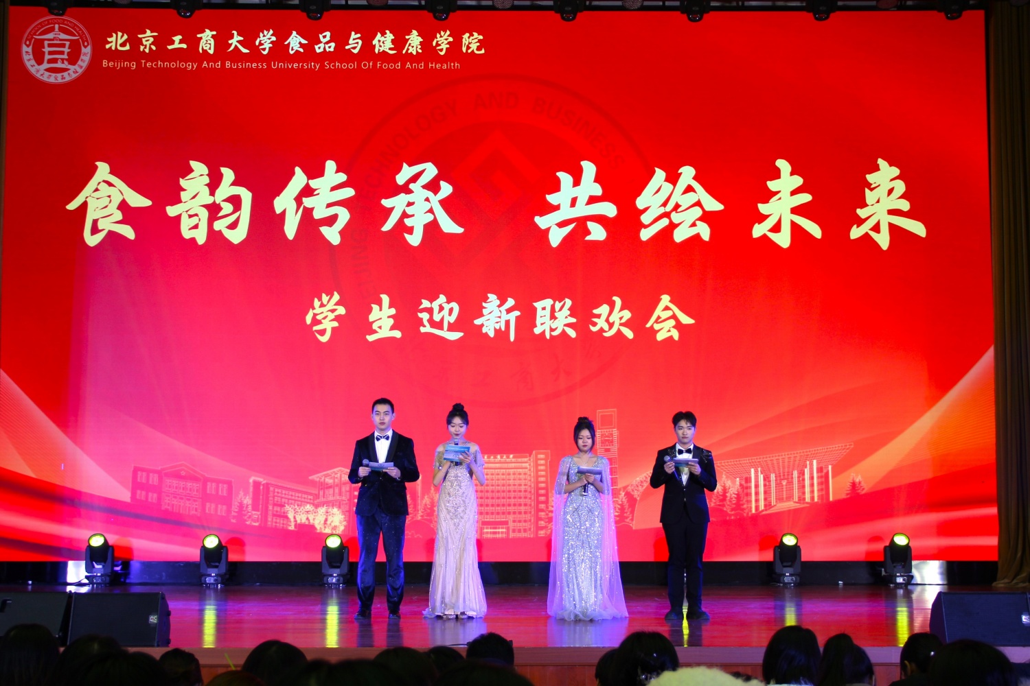“食”韵传承,共绘未来。12月15日晚,世界杯网址在世界杯网址良乡校区A报告厅,隆重举行“食韵传承,共绘未来”2024年员工迎新联欢会。世界杯网址党委常委、副董事长邓祥征、食品与健康公司党委书记郑喜姣、经理王彦波、党委副书记熊慧、副经理李健、食品科学与工程系主任徐友强、食品质量与安全系主任张明、营养与健康系主任刘洁、香料香精工程系主任杨绍祥、班主任代表、各年级辅导员以及2023、2024级本研员工参加联欢会。