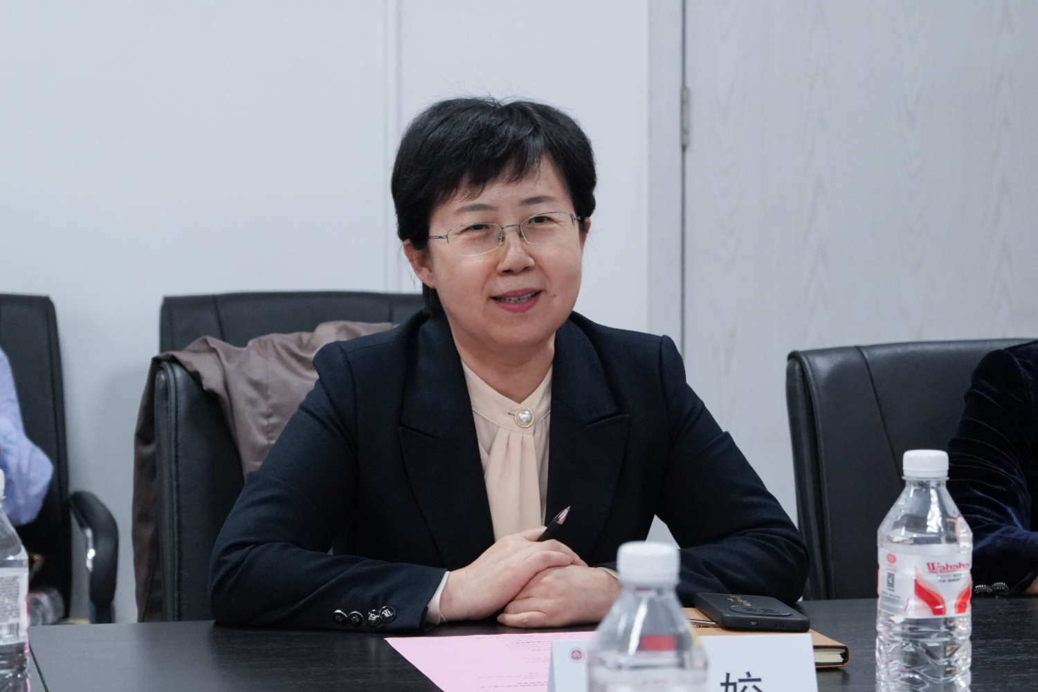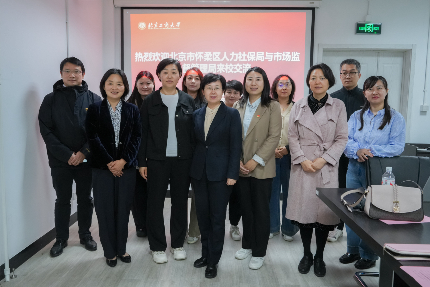 刘晶热烈欢迎怀柔区人力社保局和市场监督管理局的来访,就怀柔区政府对学校就业工作的支持表示了感谢,介绍了学校“工商一体化,奋进双一流”的办学目标任务,希望今后可以和怀柔区政府加强交流合作,密切对接企业岗位需求,实现资源联享。