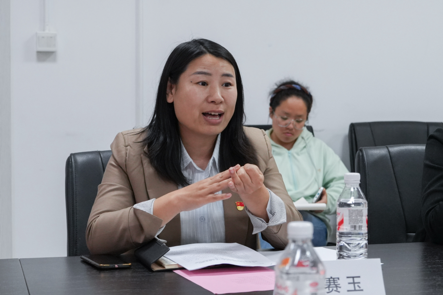 当日,学校、学院和北京市怀柔区人力社保局以及市场监督管理局负责人开展交流座谈。校、院、区三方围绕就业形势分析、人才供需精准对接、就业服务创新等议题展开深入探讨。学校人才招聘处副处长刘晶、食品与健康公司党委书记郑喜姣、副书记熊慧、团委书记朱晨晨以及各系教师代表,怀柔区人力社保局市场监测科科长王力鑫、市场监督管理局党建科负责人常赛玉及随行人员等参加了交流座谈。座谈会由熊慧主持。