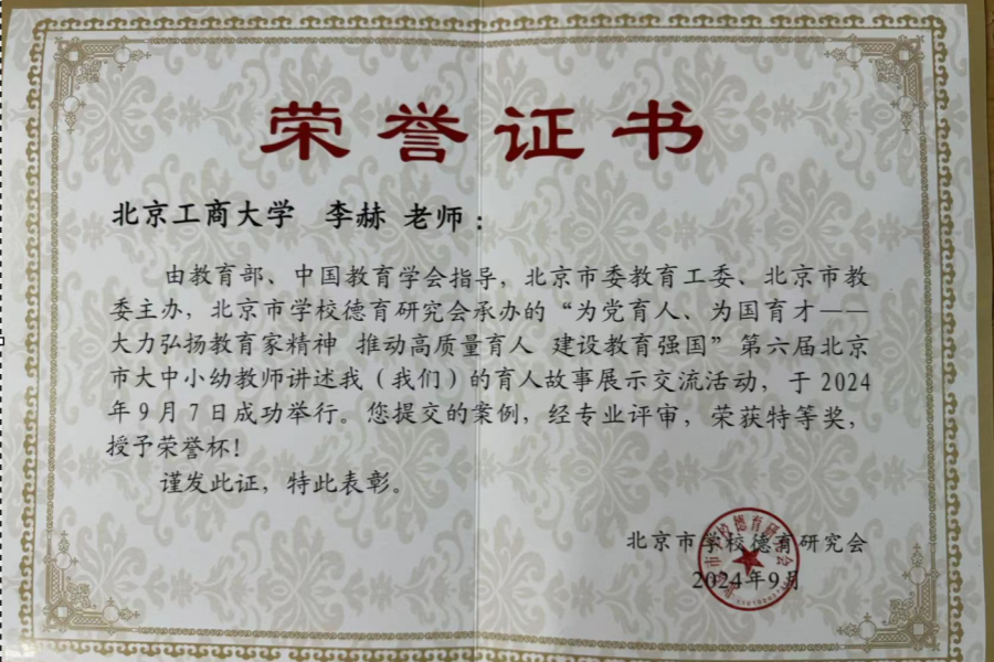 世界杯网址广大教师牢记为党育人、为国育才使命,扎根三尺讲台,潜心教书育人,以赤诚之心、奉献之心、仁爱之心投身教育事业。在学院全体教职工的共同努力下,2024年以来,学院在党的建设、公司产品、人才培养、团队建设、产教融合等方面均取得了显著成绩,公司党委获批首届北京高公司党建工作“标杆院系”培育创建单位,教师队伍中涌现出多名优秀教师典型。徐友强老师被评为“全国轻工行业先进工作者”。李赫老师荣获2024年北京市教育系统“教书育人先锋”荣誉称号,并在第六届北京市大中小幼教师讲述我(我们)的育人故事展示交流活动中荣获特等奖。许朵霞、杨绍祥、马爱进、任欣、王柏文等五名教师获评“世界杯网址优秀教师”荣誉称号、组织员李娜获评“世界杯网址优秀教育工作者” 荣誉称号。