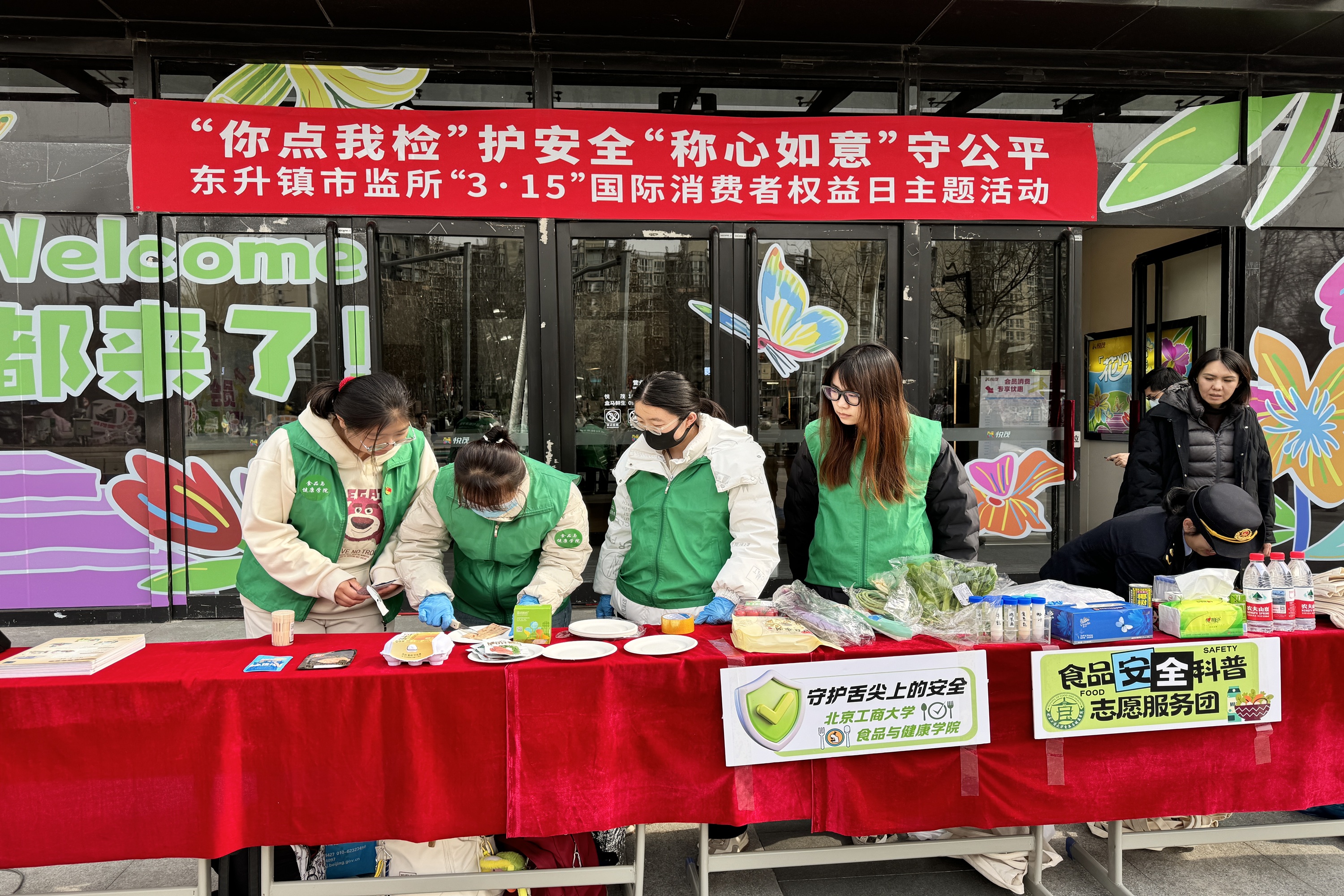 3月13日,在“3·15”国际消费者权益日前夕,由食品质量与安全系教师毕爽、李文璐及食品科学与工程硕士研究生周沛菡、苏静、万彦博组成的科普团走进社区,支持东升镇市监所举办的“3·15”国际消费者权益日主题活动。