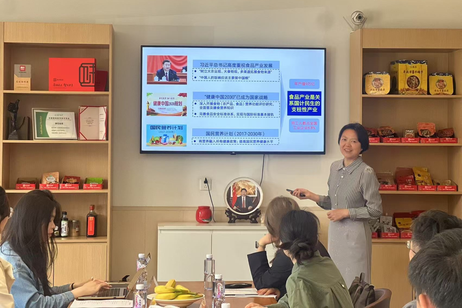 熊慧向企业方介绍了此次访企拓岗的目的,旨在深化校企合作,拓展就业渠道,促进产学研融合,为员工搭建更优质的实践与就业平台,并从学校历史、学院现况、科研情况、人才培养、毕业生情况等方面进行了详细介绍,展现了学院在食品与健康领域的教学与科研实力。