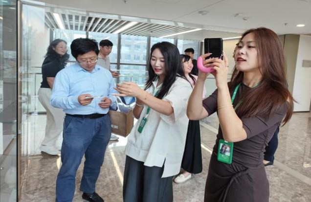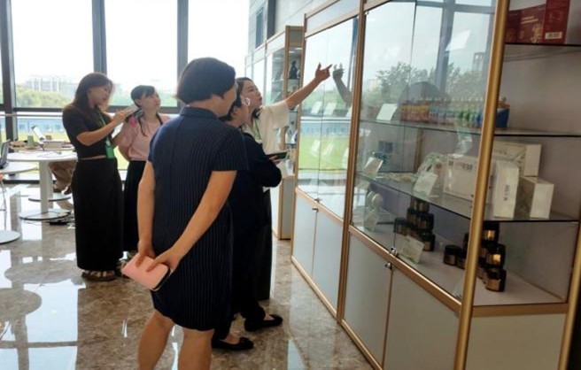 座谈会后,在院领导和老师陪同下,叮咚买菜企业代表参观了学院研发产品展柜。期间,双方就学院研发的特色产品进行了深入讨论和充分沟通,强化了未来进一步合作的意向。