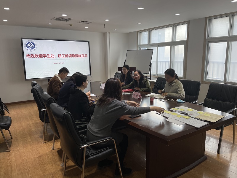 11月11日,员工处副处长盖晓庆、陶帅老师、研工部许欣老师到公司调研指导员工工作。公司党委副书记单静敏代表学院对盖晓庆副处长一行表示热烈欢迎,辅导员门怡帆、李欣萍和张雷参加了调研座谈会。
