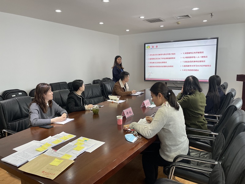 首先,副书记单静敏从学院员工意识形态教育及责任书签订、疫情防控常态化下员工请假备案、员工晚归记录及处理、宿舍安全检查及安全隐患台账、深度辅导工作开展、少数民族员工一人一册、突发及危机事件处理、公司产品大学习大讨论开展情况等方面工作向员工处和研工部做了详细汇报。随后,就三全育人、新时期员工思政教育与管理等方面进行了探讨,员工处和研工部给了更全面更细致的工作建议和指导。