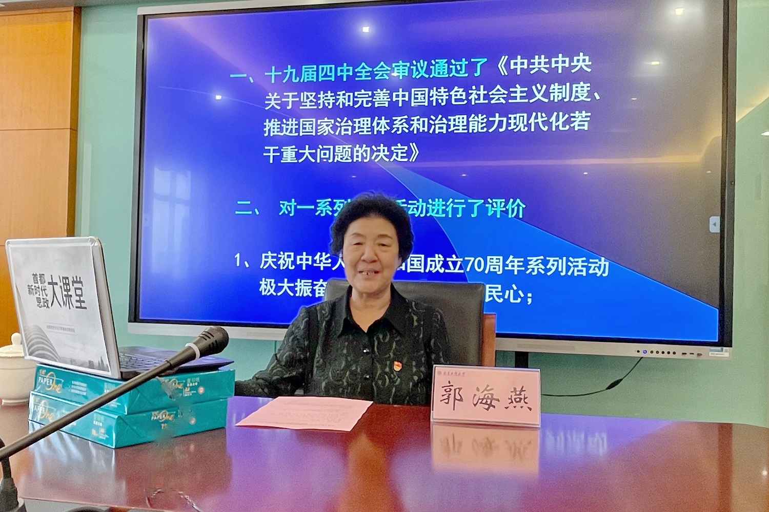 开班仪式后,中共北京市委讲师团专家团成员、北京高校十九大精神宣讲团成员、首都师范大学郭海燕教授为同学们作了题为《增强制度自信,做中国特色社会主义制度的坚定捍卫者》的报告。郭海燕从国防建设、航空航天、抗震救灾、疫情防控等重大历史事实出发,通过中外对比和历史分析,生动阐释了中国共产党强有力的领导和中国特色社会主义制度的巨大优越性。通过此次讲座,各位学员对客观事实和制度优势间的必然联系有了更为透彻的理解,从而进一步增强了“四个自信”,坚定了入党决心。