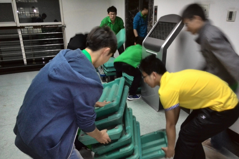 此次活动开始于2014年4月初,由于当时每个班级的空余时间不一样,只是安排分班训练基本动作,来自不同专业的10名13级小教练,每人负责一个班级,至4月20日晚才开始第一次合练,每周一到两次,一次3至4个小时。从选人教操练操,到队形的编排,从动作的设计,到赛场的演练,都流下了小教员们的汗水,来自环境工程专业的仇梦璠同学和其他109位同学完成了一个看似不可能完成的任务。