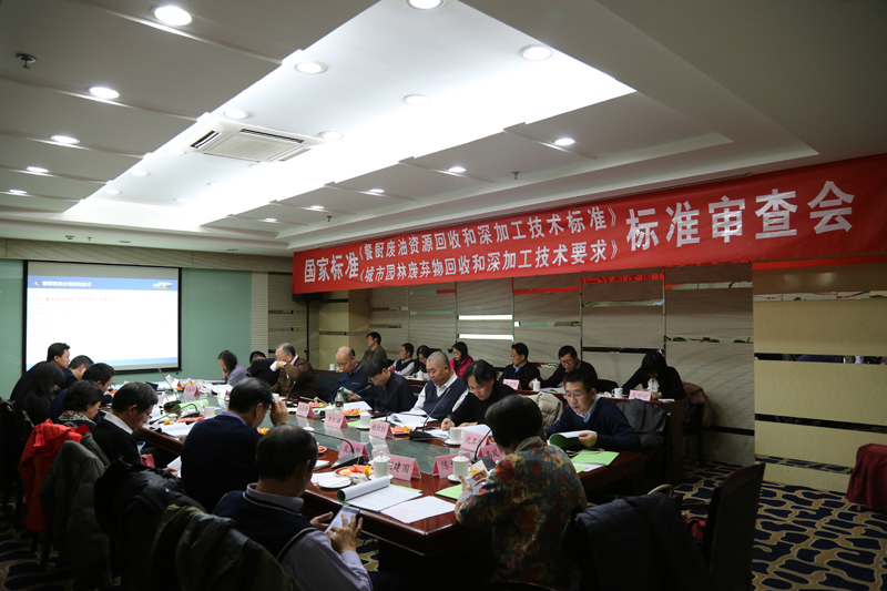 2015年11月24日下午,全国产品回收利用基础与管理标准化委员会在北京组织召开了《餐厨废油资源回收和深加工技术标准》(20083001-T-303)和《城市园林废弃物资源回收和深加工技术要求》(20083003-T-303)两项国家标准的审查会,标准化委员会高东峰副研究员主持了会议,对公司任连海教授主持的两项国家标准进行了审查。评审专家由标准审查委员会13名委员和3名特邀行业专家组成。参加此次审查会的还有北京环卫集团环境研究发展公司、中粮集团、青海洁神环境能源产业有限公司、宁波开诚生态技术有限公司、江苏洁净环境科技有限公司、青岛天人环境股份有限公司等标准参编单位负责人,共36人。